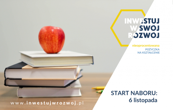 Uprzejmie informujemy, że nowy nabór wniosków o udzielenie pożyczki w ramach projektu „Inwestuj w rozwój – Pożyczki na kształcenie” rozpocznie się 6 listopada 2019 r. (środa) o godz. 12.00.